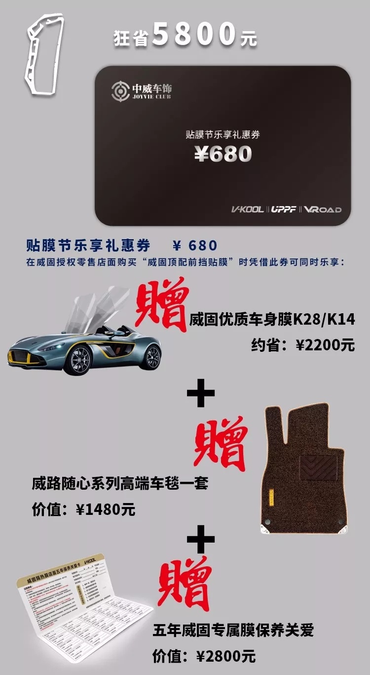 在南京久久(解放路店)購買“威固頂配前擋貼膜+威固優質車身膜”時,僅需+ ¥ 780