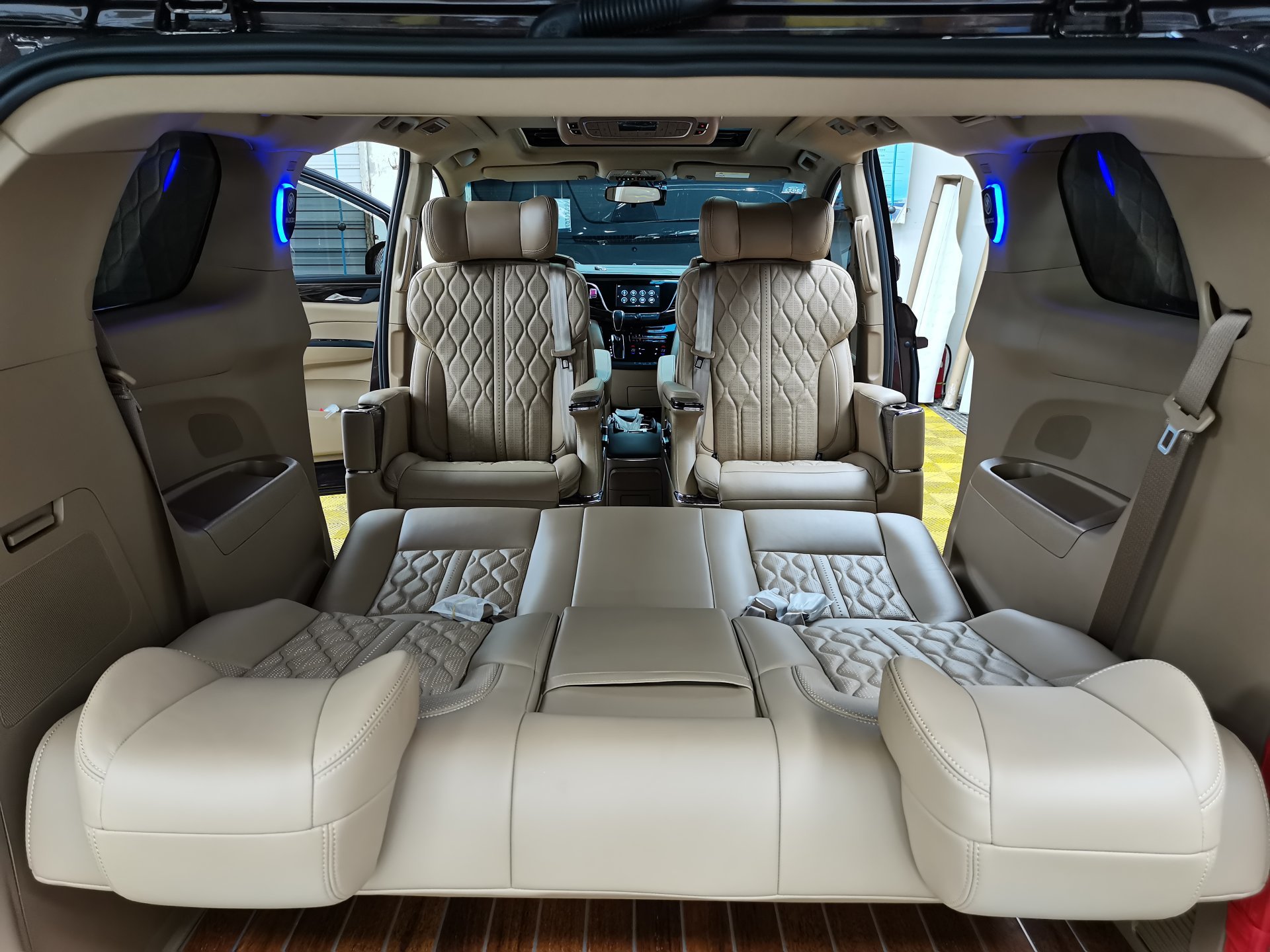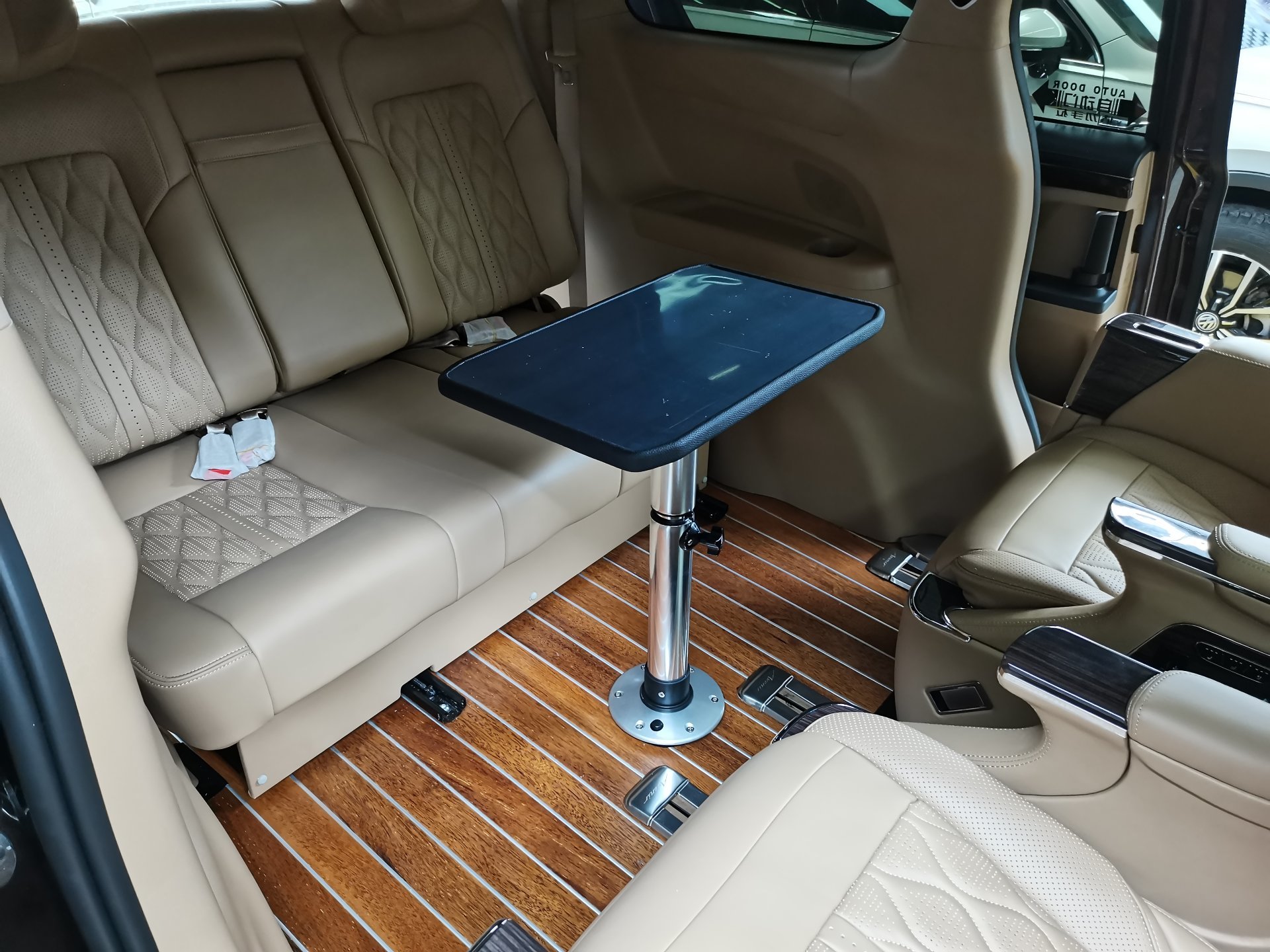 整車配色依舊采用原廠大漠米配色風格,與整體内飾更加協調一緻。主副駕座椅包覆,座椅飄雪TV後 (hòu)方折疊小 (xiǎo)桌闆,外加45度帶燈休息腳踏!