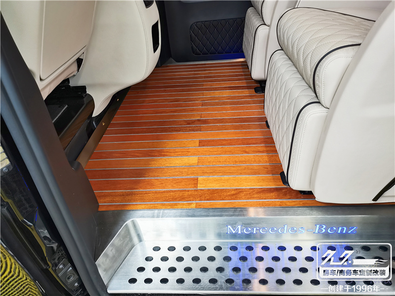 乘客艙,原車絨地毯打理起 (qǐ)來十分麻煩,所以 (yǐ)加裝了遊艇實木地闆美麗免費,易于清潔打理,整體檔次也 (yě)大大提高;木地闆下方貼上大能 (nén高清GOg)藍金剛止震闆,做了隔音降噪處理!